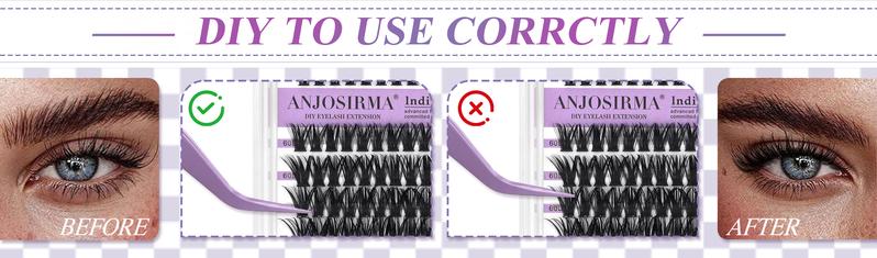 【Premium Quality Lashes】: Expertly crafted from high-grade silk fibers, ANJOSIRMA cluster lashes are completely cruelty-free and reusable multiple times with proper care. They're ultra-soft, comfortable, and knot-free. Our volume lash clusters are meticulously handmade and adjusted to ensure they're lightweight, never weighing you down, and always delivering the ultimate lash aesthetic.